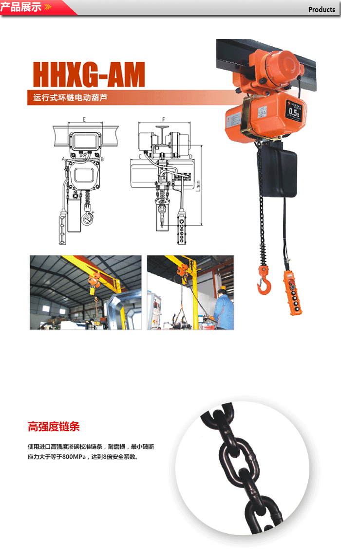 8.起重鏈條是特殊合金鋼製作並經過熱處理,不能私自進行焊接或改裝。
