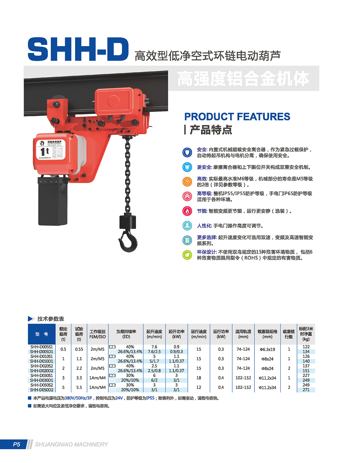 SHH-D低建築環鏈電動青青草在线视频免费观看,使用安全、質量優良、壽命長、效率高,在縮短機體與橫梁軌道間距離上具有獨特的結構,適用於建築物內使用,尤其適用於臨時搭建廠房內或者在其內需要擴大有效提升距離的場所。
